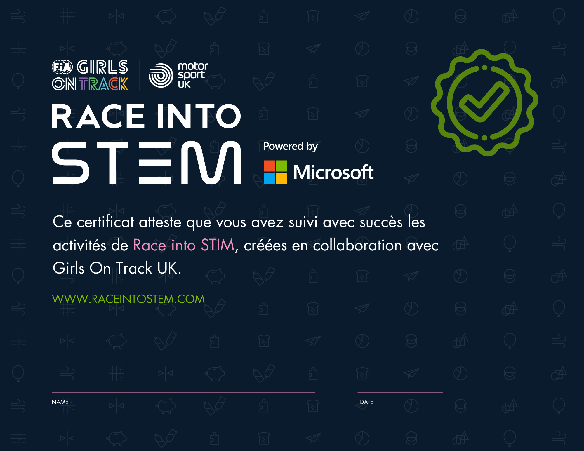 Cliquez pour télécharger votre propre certificat Race into STEM !